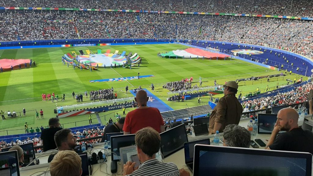 هواداران ایتالیایی که شهر را روی سرشان گذاشته اند و متحد سرود می خواندند با شروع بازی کم کم سکوت می کنند. آنطرف سوییسی ها باوجودی که تعدادشان کمتر است کم نمی گذارند.بازی کاملا در اختیار سوییس است و همین شور و هیجان طرفدارانشان را به اوج رسانده. بازی مالکانه آنها باعث می شود سایه ای از آتزوری همیشه مدعی را ببینیم و این وضعیت تا پایان فرقی نمی کند تا ایتالیا در همین مرحله با یورو ۲۰۲۴ خداحافظی کند.